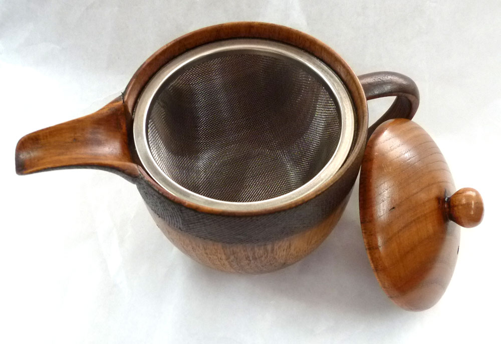 急須として、汁次、としても 温かいものを入れると、 しばらく漆の香りが残ります。茶漉しもついています。