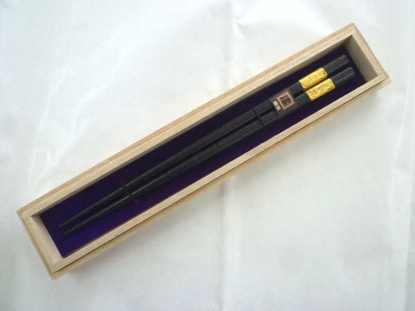 伝統工芸輪島塗 乾漆の丈夫な仕上げに本金箔仕上げ 桐箱入りで贈答に最適です。225mmx8mm角 朱塗もございます。