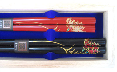素敵な蒔絵のわかるあなたに(純国産 伝統工芸輪島塗) 「輪島ならではの伝統的蒔絵技法」を施した夫婦箸がお手頃な価格。大切な方への贈り物などに是非。 箸の長さは、225mmと210mmです