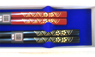 輪島塗木製本漆ペア夫婦箸 桐箱入沈金波に桜