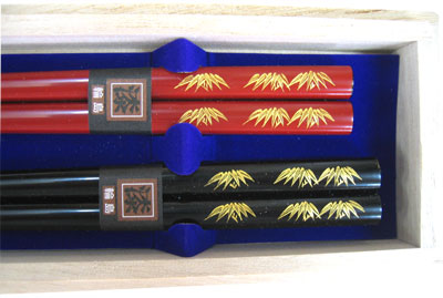 きらりと光る沈金の奥ゆかしさ(純国産 伝統工芸輪島塗) 「輪島ならではの伝統的沈金技法」を施した夫婦箸がお手頃な価格。大切な方への贈り物などに是非。 箸の長さは、225mmと210mmです